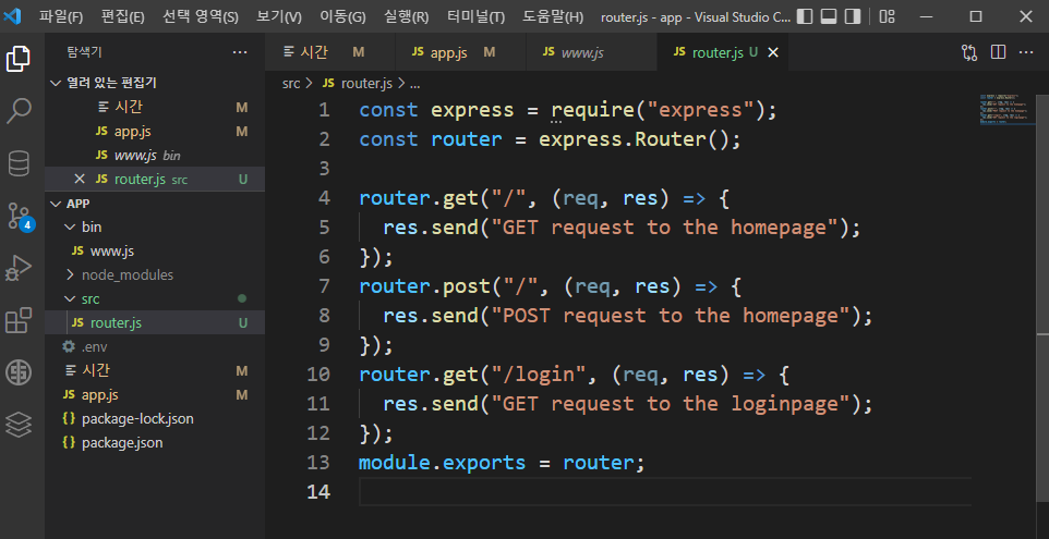 | 우리밋 강의 router에서 controller분리 (0) | 2022.05.02 |