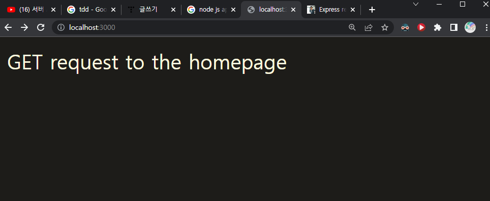 localhost:3000/이면 4~6번째 줄이 쓰이며 요청을 아래 사진과 같이 반환한다.