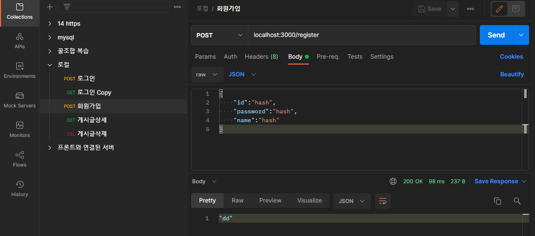 const query = "insert into user(id, password, name) values (?, ?, ?);";